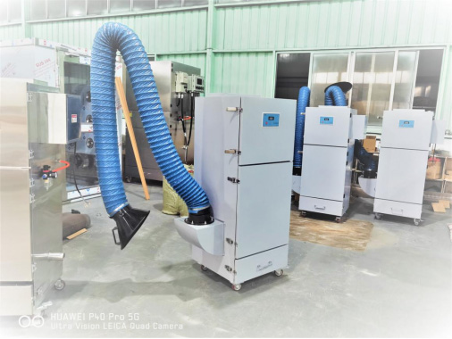 吸焊煙煙塵除塵器工作原理是含塵氣體由吸風(fēng)口經(jīng)管道進入靜壓室后,粉塵經(jīng)過濾芯過濾,首先氣流快速的降低和氣流方向的改變,使大顆粒的粉塵由于重力作用和慣性而直接沉降于集塵抽屜內(nèi),對于較輕、較細(xì)的粉塵則被阻留于濾筒壁,為防止堵塞濾筒,必須要對濾筒進行清灰,采用智能定時脈沖閥,通過氣壓的反吹分別依次對濾筒進行清灰,效果顯著,凈化后的清潔空氣通過離心風(fēng)機的作用經(jīng)出風(fēng)口排出箱體外,由出風(fēng)口排除的風(fēng)直接排入室內(nèi)(亦可接風(fēng)管排至室外)。