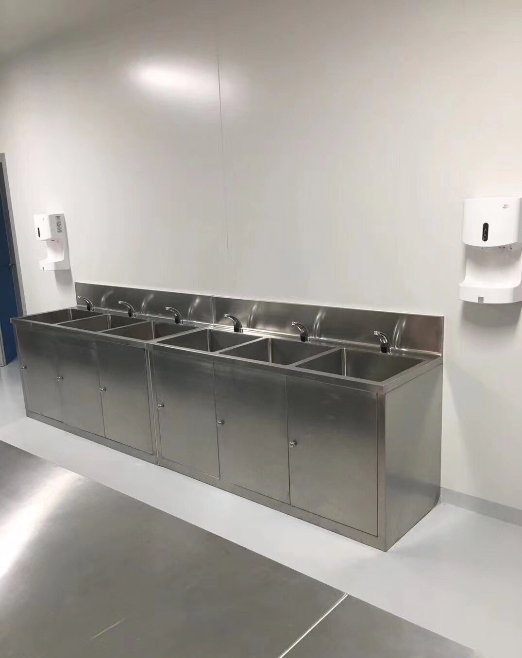 感應(yīng)洗手池為手術(shù)醫(yī)務(wù)人員洗手專用設(shè)備,采用人體感應(yīng)自動(dòng)給水,因此無需使用人員觸摸,保證清潔,流量500l/h,采用0.1μm超濾膜,可將至毒病菌全部濾掉,同時(shí)采用雙柱超濾組件,具備反沖技術(shù),可長期使用。 不銹鋼洗手池采用進(jìn)口優(yōu)質(zhì)304不銹鋼板制造,鋼板厚度1.5mm,不銹鋼洗手池池體采用一體式?jīng)_壓技術(shù),不銹鋼刷手池池體采用弧形結(jié)構(gòu)、靜音防濺,有效防止水濺到洗手池外,洗手池可選裝自動(dòng)感應(yīng)水龍頭,腳踏式開關(guān),膝觸式開關(guān),自動(dòng)給皂機(jī),給刷器,熱水器,照明燈,鏡子及納米過濾膜等設(shè)備。