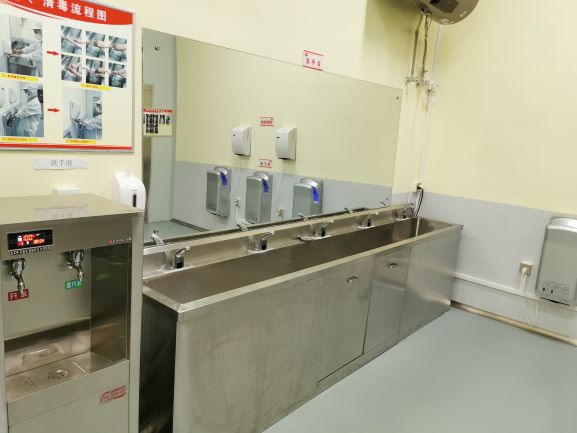 不銹鋼洗手池為手術醫(yī)務人員洗手專用設備,采用人體感應自動給水,因此無需使用人員觸摸,保證清潔。材料經(jīng)整體加工成型槽體,具有抗壓強度高,柔韌性好,耐侯性優(yōu)良;抗氧化,耐強酸強堿,表面光滑,易清洗,耐磨損,壽命長,損傷后極易修復,對人體無毒性等特征及優(yōu)點。表面質感好,細膩親切、無冰冷生硬的感覺。洗手池以人體工程學設計,洗手時水花不會濺在身上。特制長頸花灑水龍頭,感溫探頭開關出水,安全可靠,通用的電源插頭、標準的排水管活接頭連接方式以及獨立的持式槽體支撐系統(tǒng),安裝方便快捷。